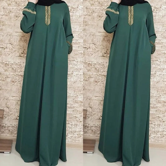 Muslim Abaya Ethnic Style Print Islam Abaya Dress Solid Color Loose Casual Robe Femme Musulman for Middle East Arabia